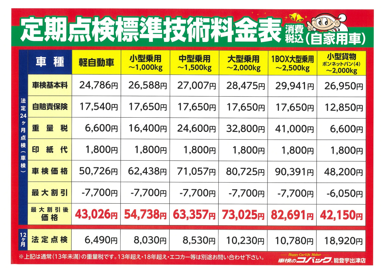 車検期限の6ヶ月以上前までにご予約いただくと2,750円の割引になります。