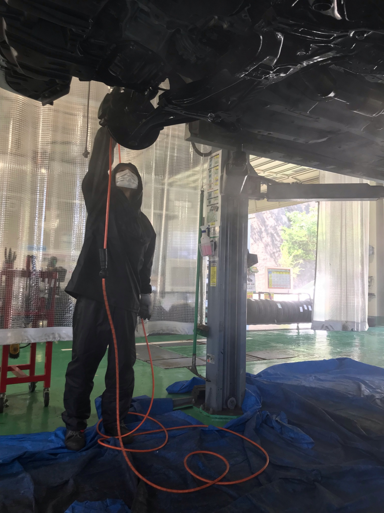 海水や冬季の塩カル散布に伴い、おクルマの下回り(マフラーやシャシー等)の錆が発生します。当店では塩カル防錆剤を使用しお客様のおクルマを錆から守り、長く安心してカーライフを送って頂けるようご提案しております。クルマ専用の防錆剤を使用し施工します。奥能登地区では当店のみの取り扱いですので、是非お試し下さい!